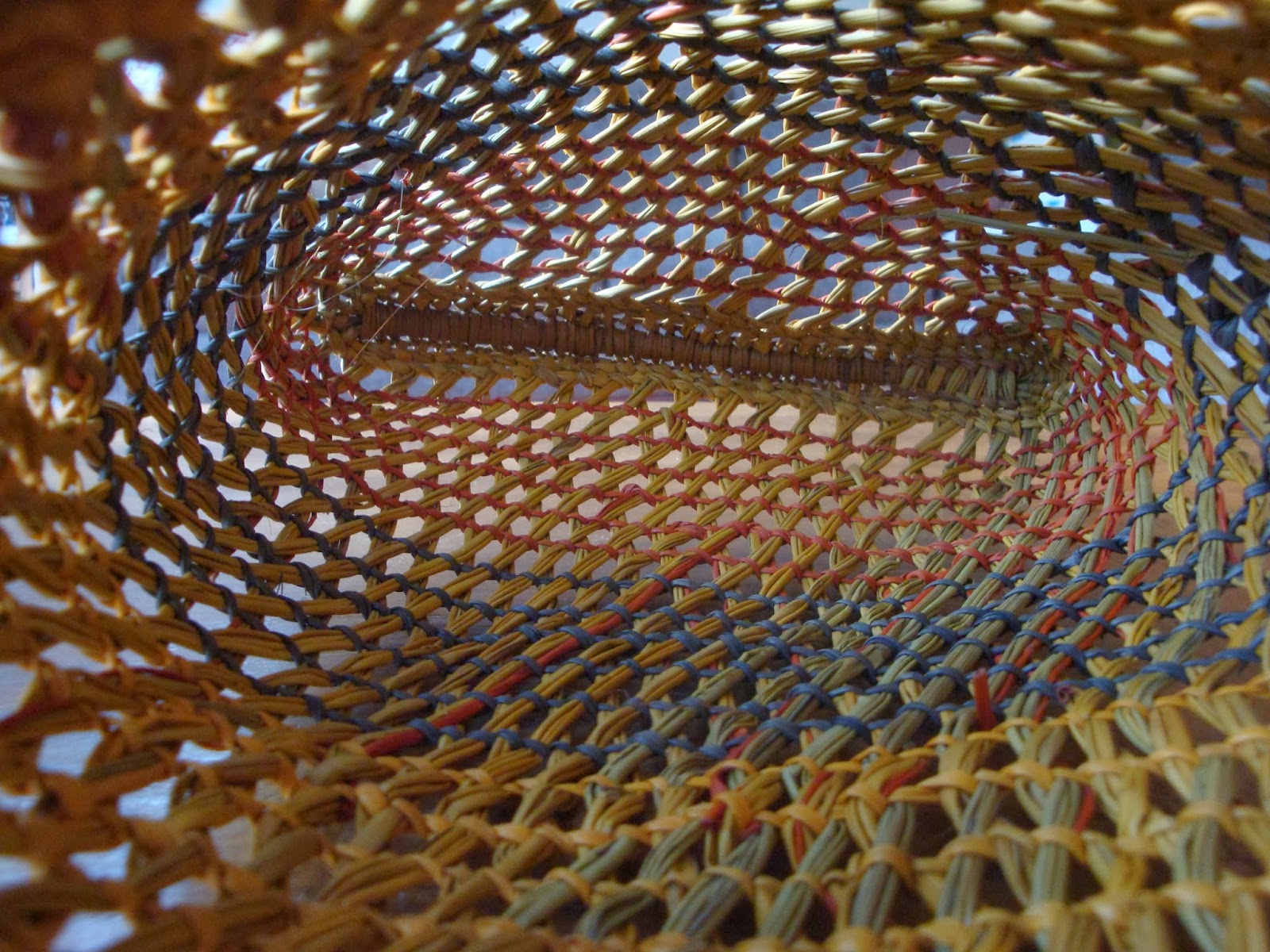 Two and half years ago I travelled to Mapuru, a small indigenous community in Arnhem Land in the Northern Territory, where I sat the women weavers and learned the basics of their beautiful, highly skilled craft. I blogged about it here and here. The image above is of a basket woven by Mapuru weaver, Margaret Bambalarra. After buying the basket from Margaret I carried it all the way back to Melbourne. It's now hanging on my wall at home. Each time I walk by it I drink in the colours of the top end and think about that wonderful community of women weavers.